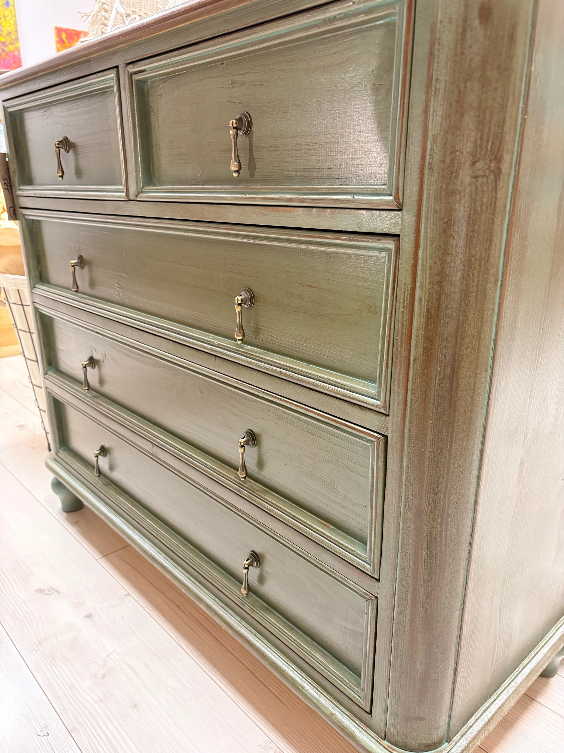 Upcycled Pine Chest of Drawers – Hand-Finished in Deep Green |